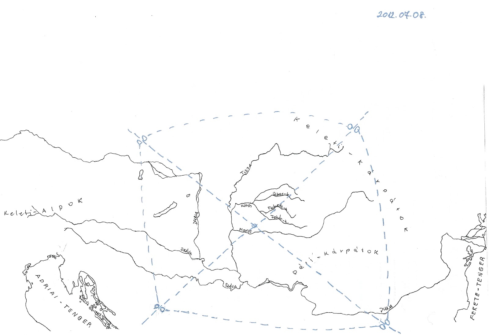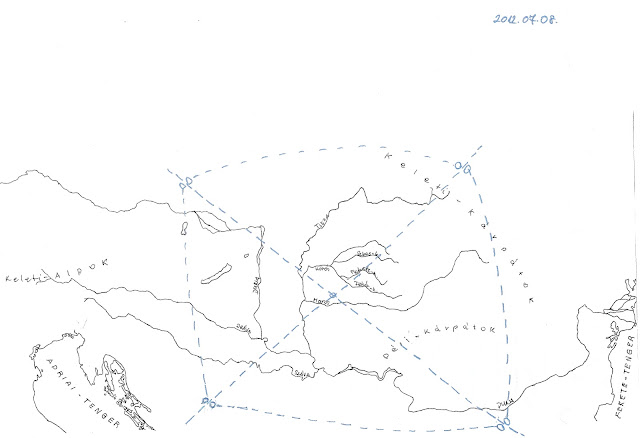 középen, Arad térségében metszik egymást, ha vonallal összekötjük őket.
